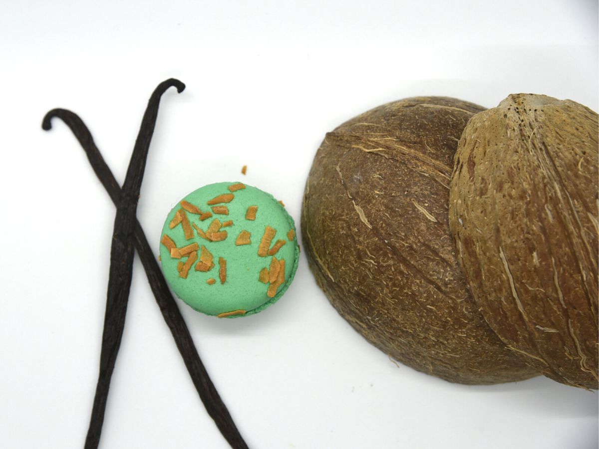 Caribbean Coconut Macarons are full of coconut and vanilla flavor, filled with grated coconut and the filling is dairy-free. The shells are sprinkled with toasted coconut. This combination of flavors gives our Caribbean Coconut Macaron an exceptional taste.
