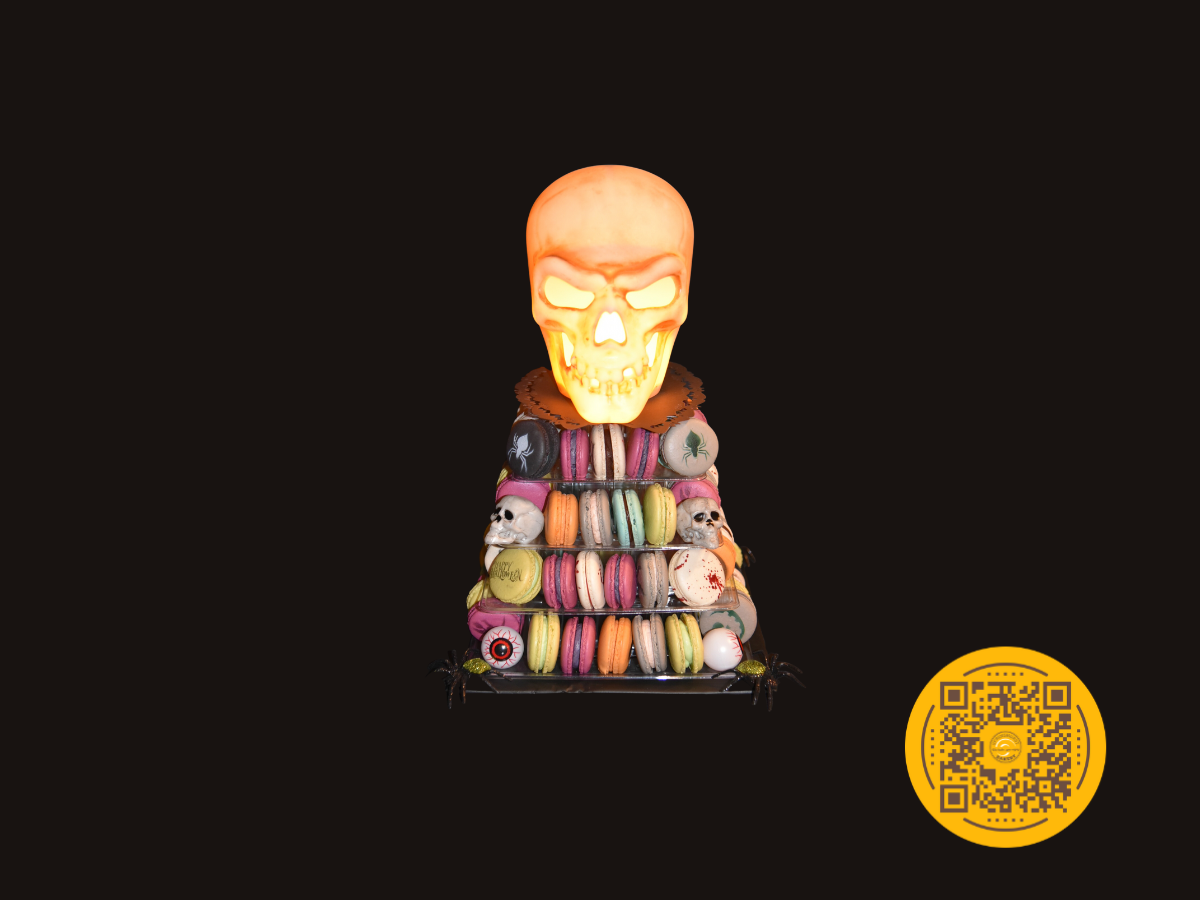 Tower Macaron Halloween - SKULL is a product that cannot be overlooked. Its mysterious presence with a skull on top, glowing in the darkness, will undoubtedly captivate you. With 72 enchanting macarons, this product immediately grabs attention.